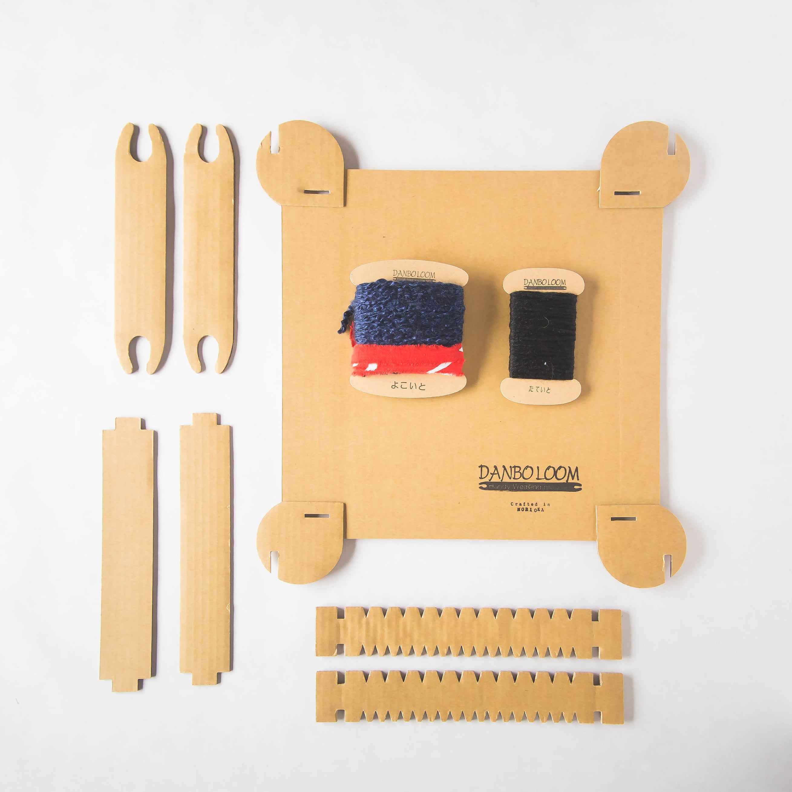DANBOLOOMは開封から3分で組み立て、織り始めることの出来る画期的な織り機です。シンプルな構造で、パーツは全て段ボール製。小さなお子様も安心して取り組めます。織りの仕組みを理解すれば、作家活動にも役立つでしょう。