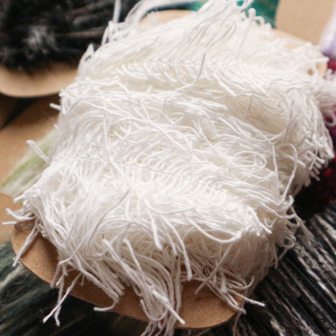 10mの毛糸をカード巻きにして4個(40m分)のアソートと、モコモコな生地の端耳1個(2m)をセットにしました。この機会にぜひご注文ください。